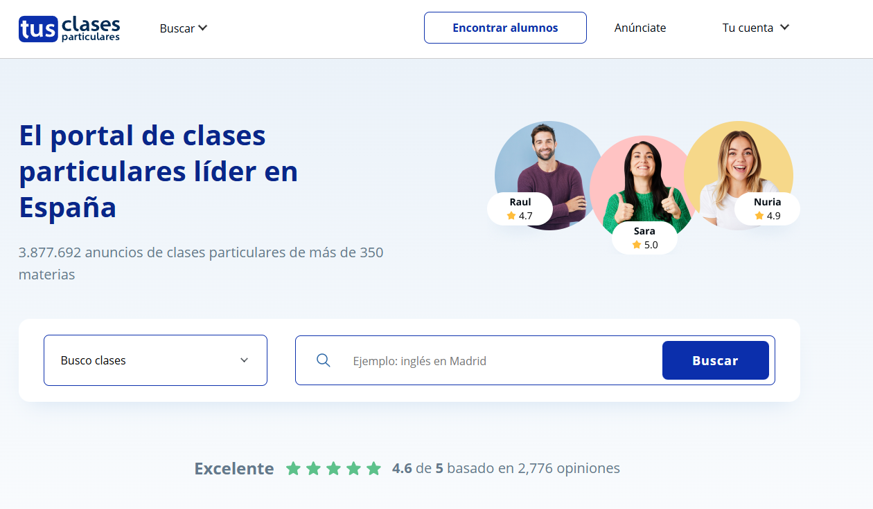 1. Tusclasesparticulares: clases personalizadas con profesores reales